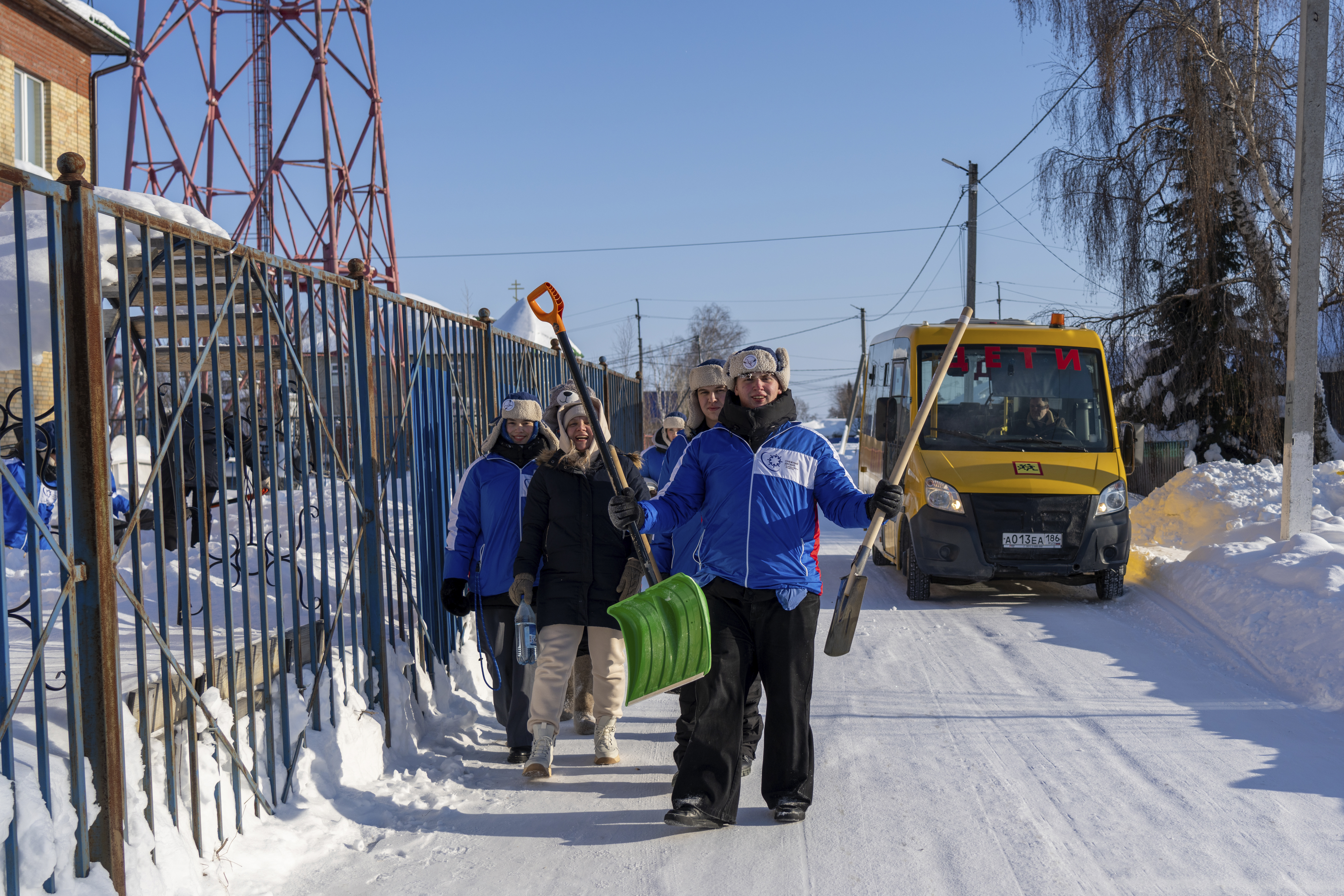 Первым пунктом маршрута стал Луговской. Здесь студенты провели для школьников мастер-классы «Дружба мира: руки единства» и «Внутренний компас», организовали профориентационные встречи, а затем помогали пожилым жителям по хозяйству – чистили снег, убирали дворы. Не обошли стороной и местный храм, где также расчистили дорожки. В модельной библиотеке и ДК «Дружба» прошли встречи с волонтерами проекта «Родное тепло» и «серебряными» добровольцами, а завершился день концертом для жителей.