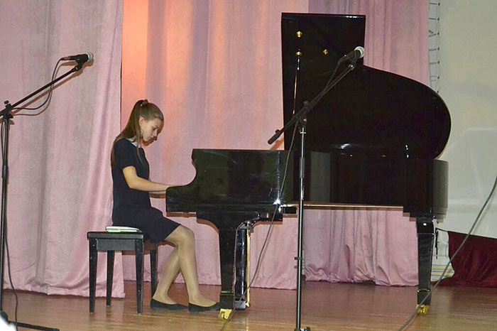 В программе выступлений прозвучали фортепианные произведения зарубежных композиторов: К. Дебюсси «Арабеска» № 1, К.Ф.Э. Бах «Сольфеджио» в исполнении Екатерины Кожевниковой, представительницы выпускного 7-го класса музыкальной школы.