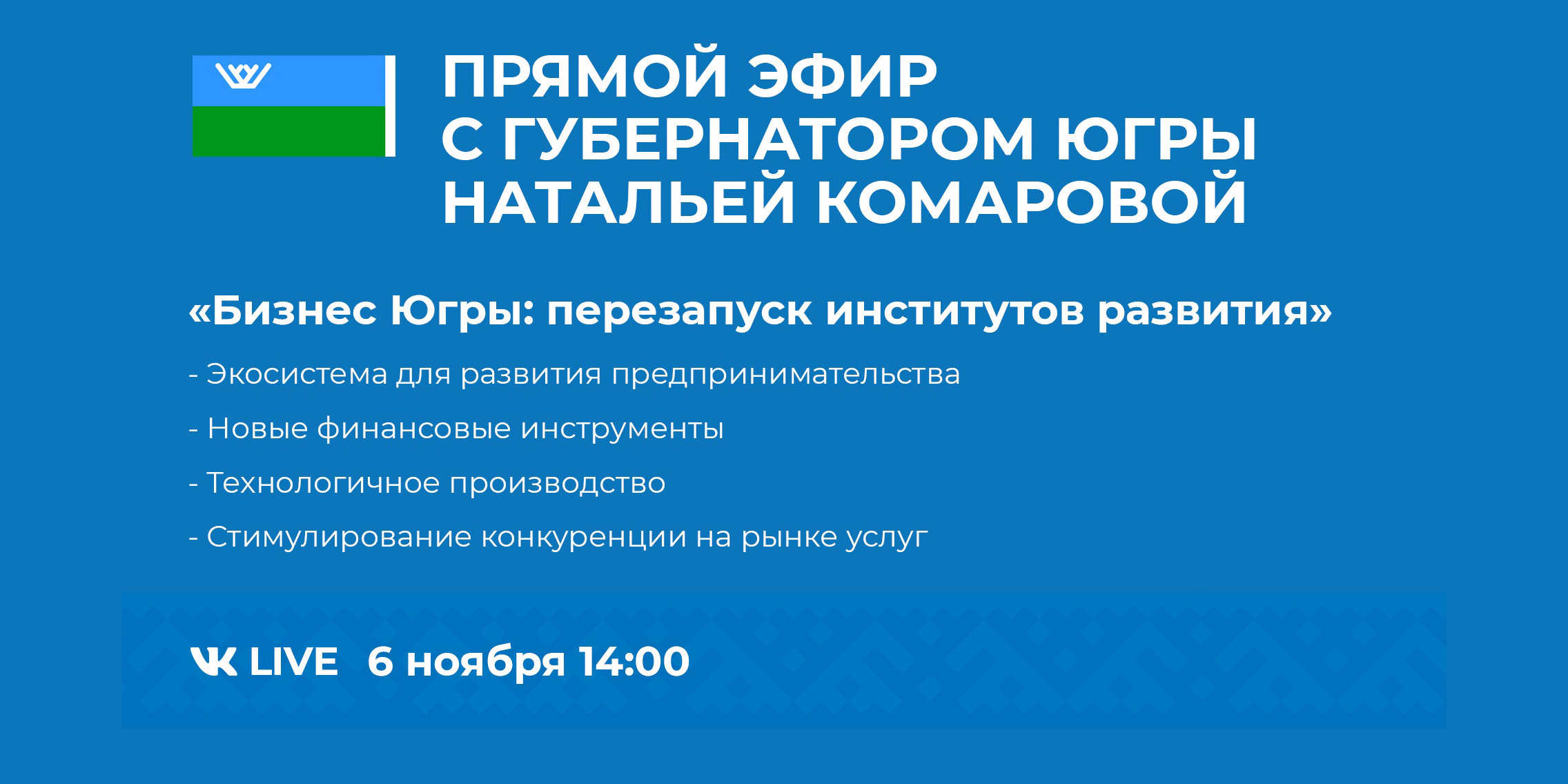 Губернатор округа Наталья Комарова в прямом эфире встретится с экспертами, представителями профильных департаментов и общественниками.