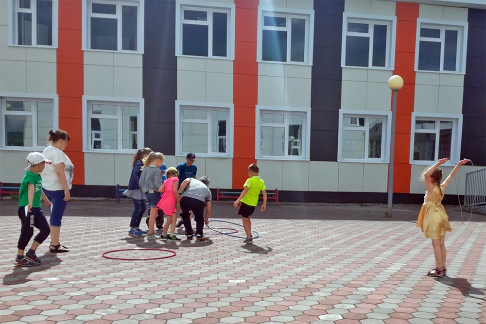 Большинство мероприятий и игр проводилось на свежем воздухе, на территории образовательного учреждения.