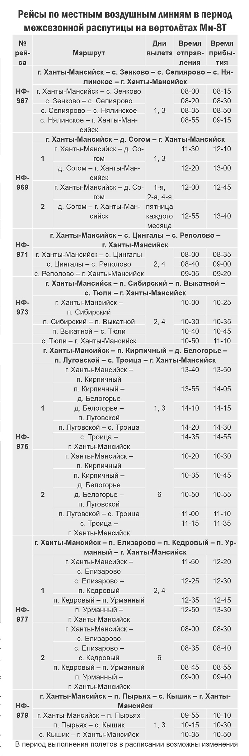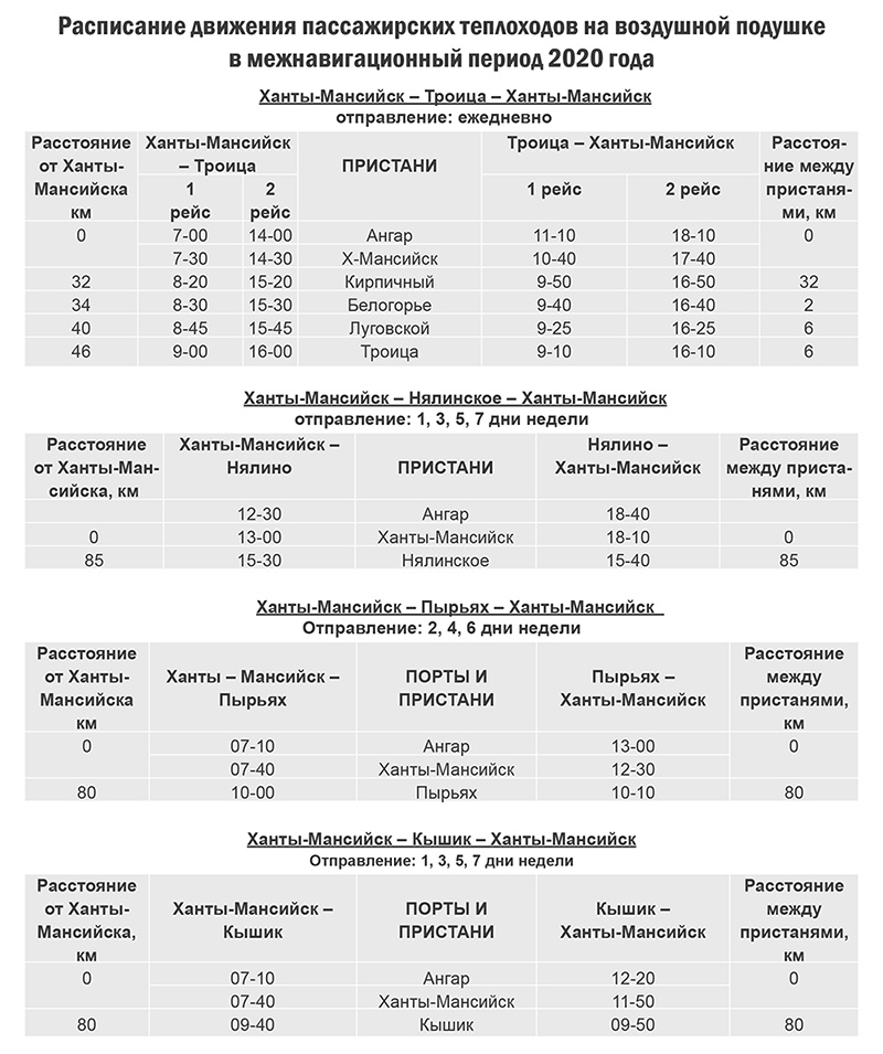 Расписание пассажирского транспорта в межнавигационный период 2020 года.