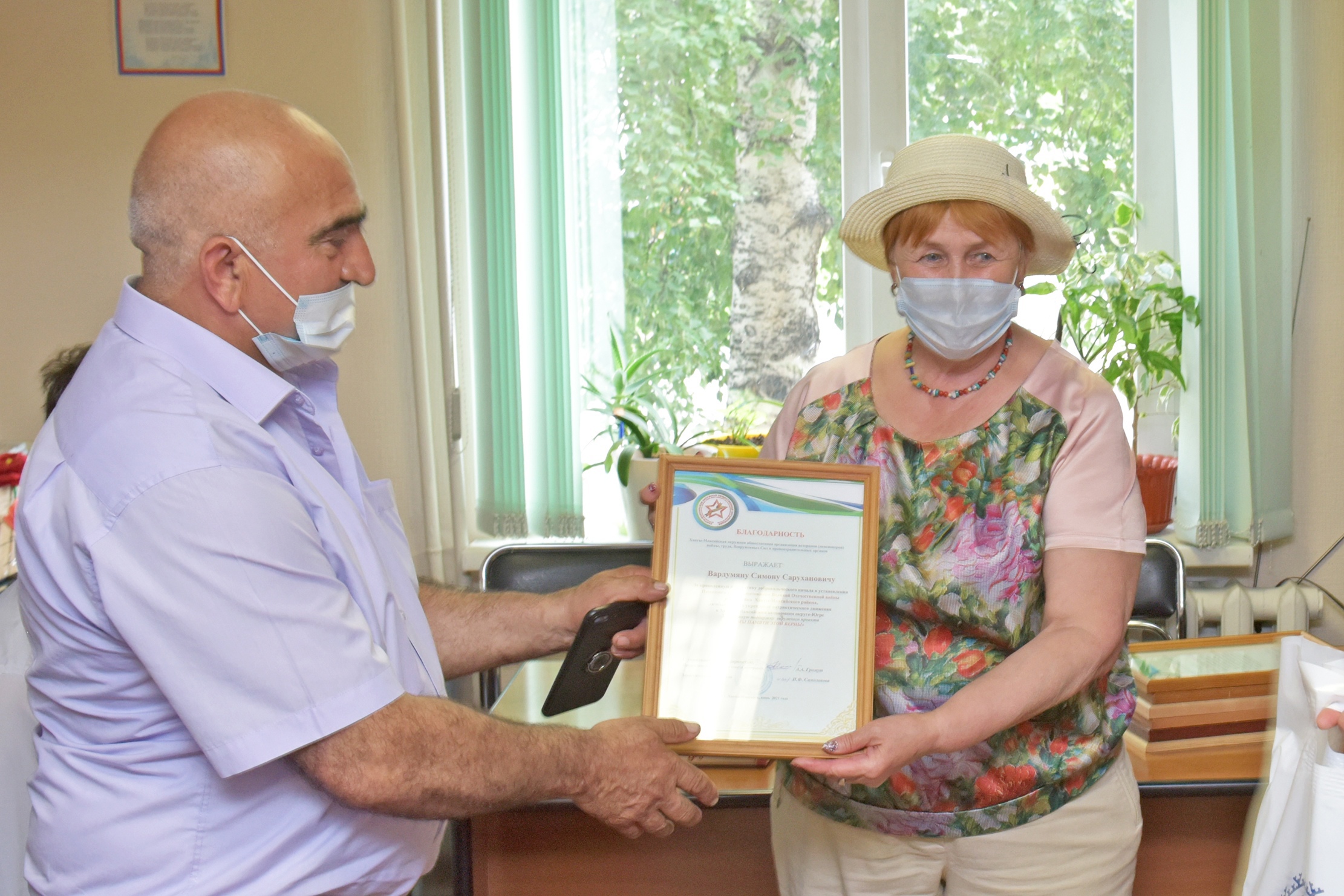Благодарность Ханты-Мансийской окружной общественной организации ветеранов за проявленную инициативу добровольческого начала в установлении Памятного знака фронтовикам в д. Семейка и за личный вклад в укрепление патриотического движения в Югре, за активную поддержку окружного проекта «Мы памяти этой верны» – вручили: