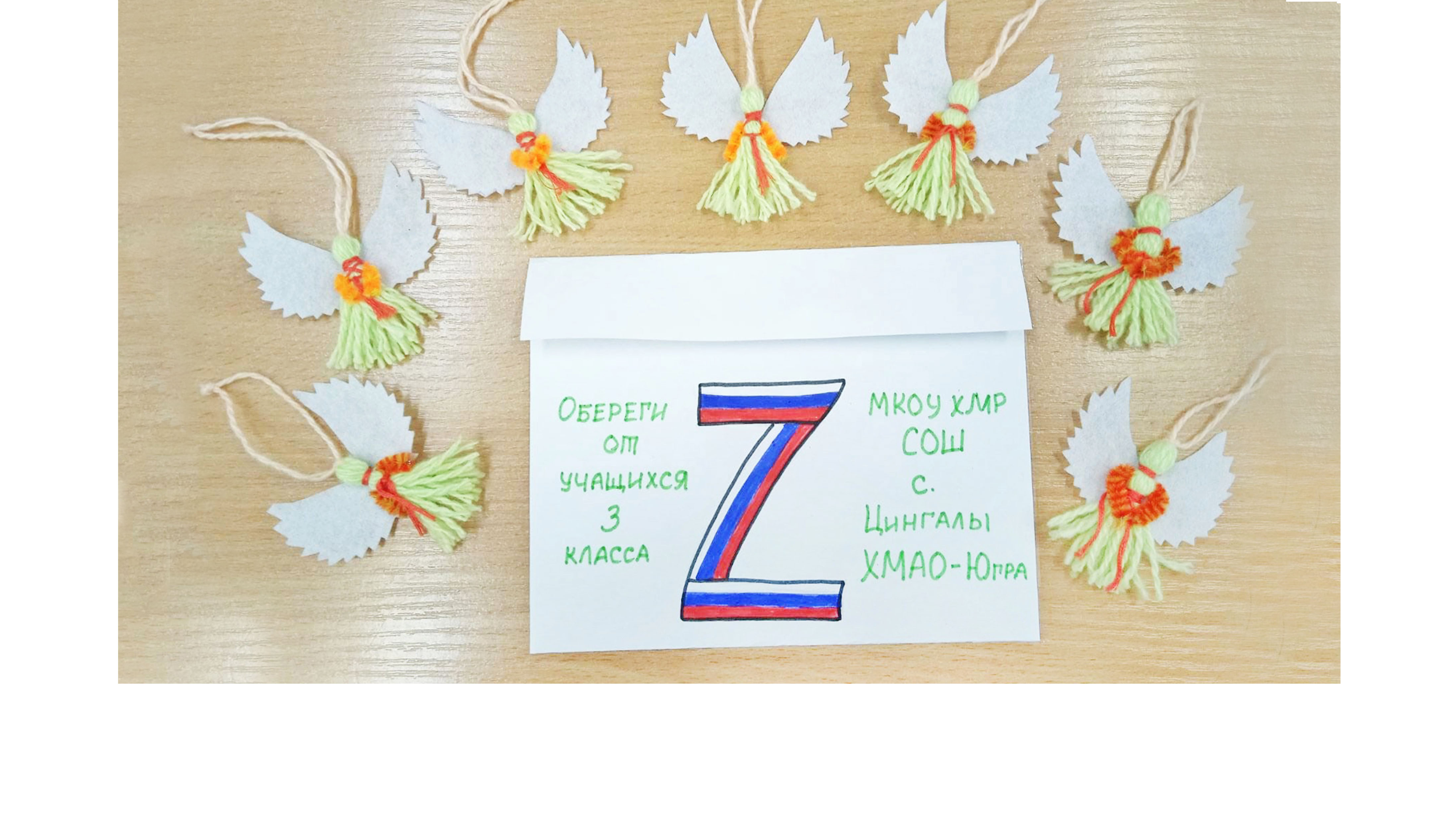 Рисунки, рукодельные обереги и письма для солдат Российской Армии, защищающих нашу Родину, – изготовили учащиеся 3-го класса школы села Цингалы, классный руководитель Татьяна Пухова.