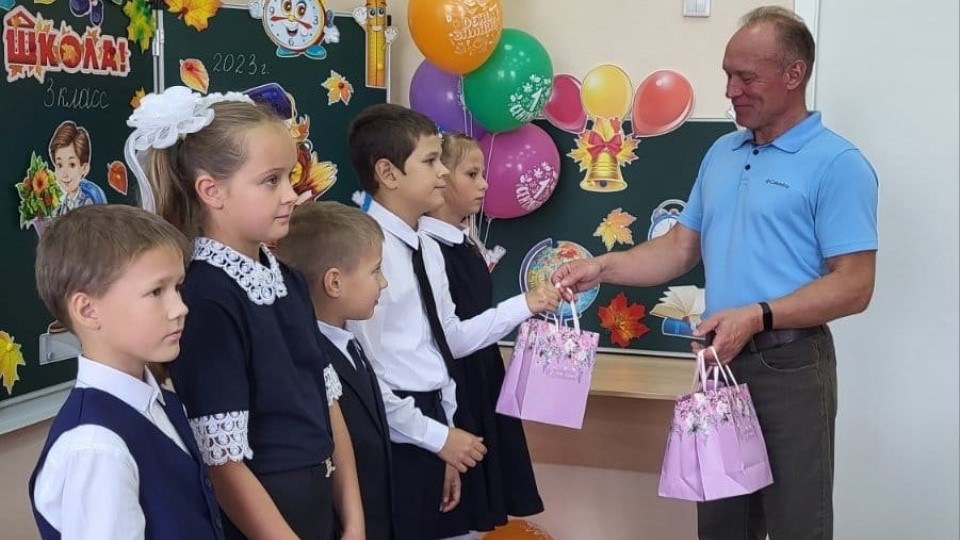 В селе Елизарово член местного политсовета «Единой России» Сергей Тукранов вручил подарки первоклассникам – канцелярские принадлежности, которые помогут им на занятиях в образовательной организации.