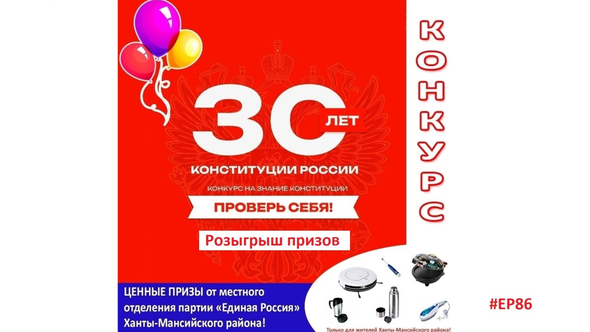 12 декабря в онлайн-формате состоялся муниципальный розыгрыш призов среди жителей Ханты-Мансийского района, посвященный 30-летию Конституции России.
