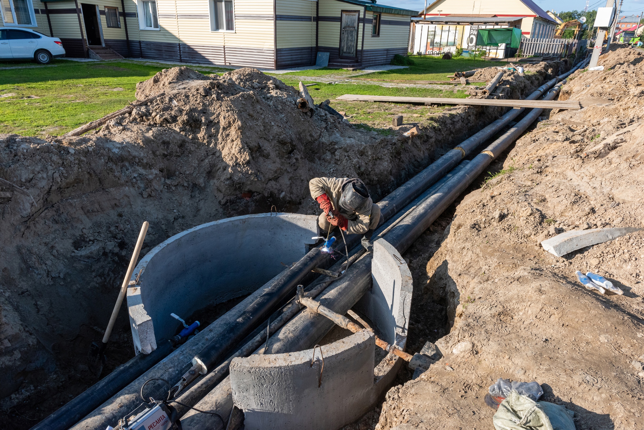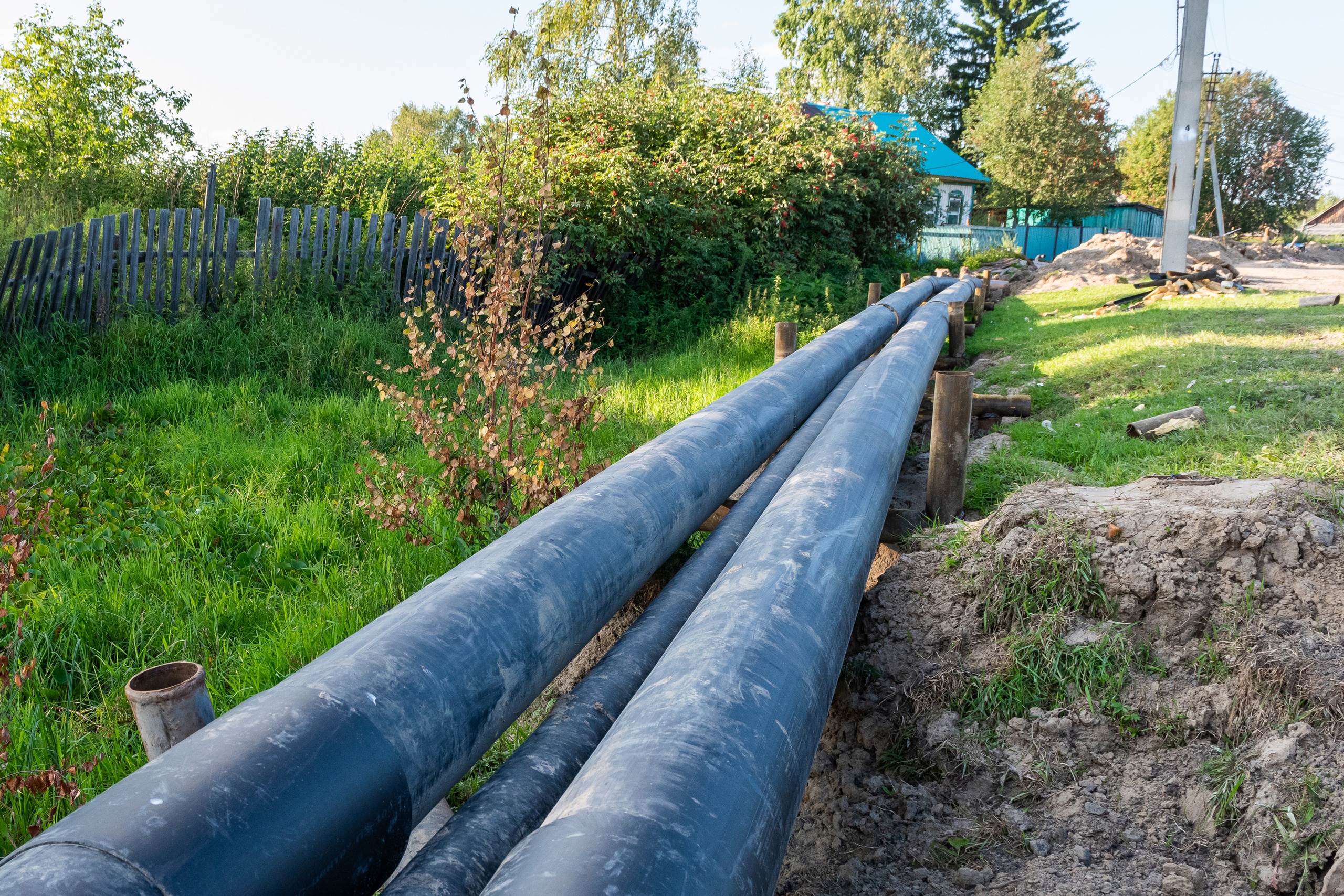 В работе почти километр сетей тепловодоснабжения в трехтрубном исполнении. Бригада подрядчика работает интенсивно. Демонтаж старой трассы завершен, идет укладка новой трубы в ППУ-изоляции. Работы выполняются в соответствии со сроками по муниципальному контракту.