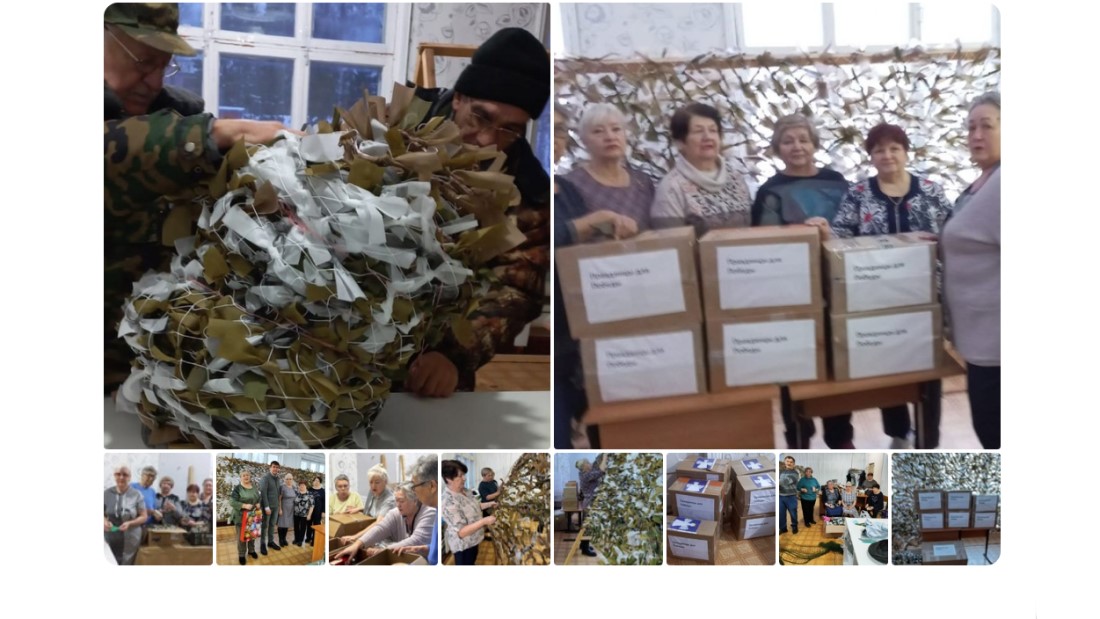 Инициативная группа жителей Горноправдинска занимается плетением маскировочных сетей, изготовлением окопных свечей, формированием посылок на фронт с продуктами питания, тёплыми вещами.