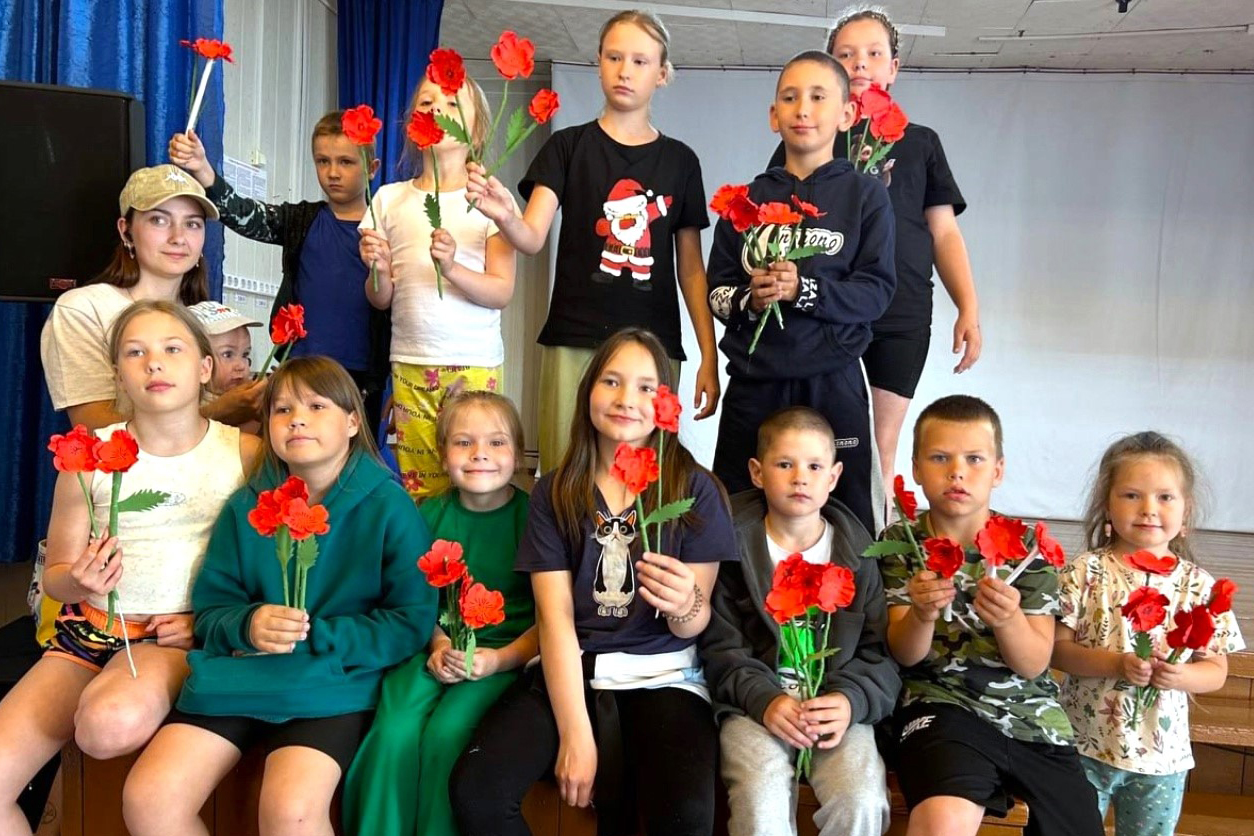 Школьники Ханты-Мансийского района изготовили красные маки в память о героях войны.