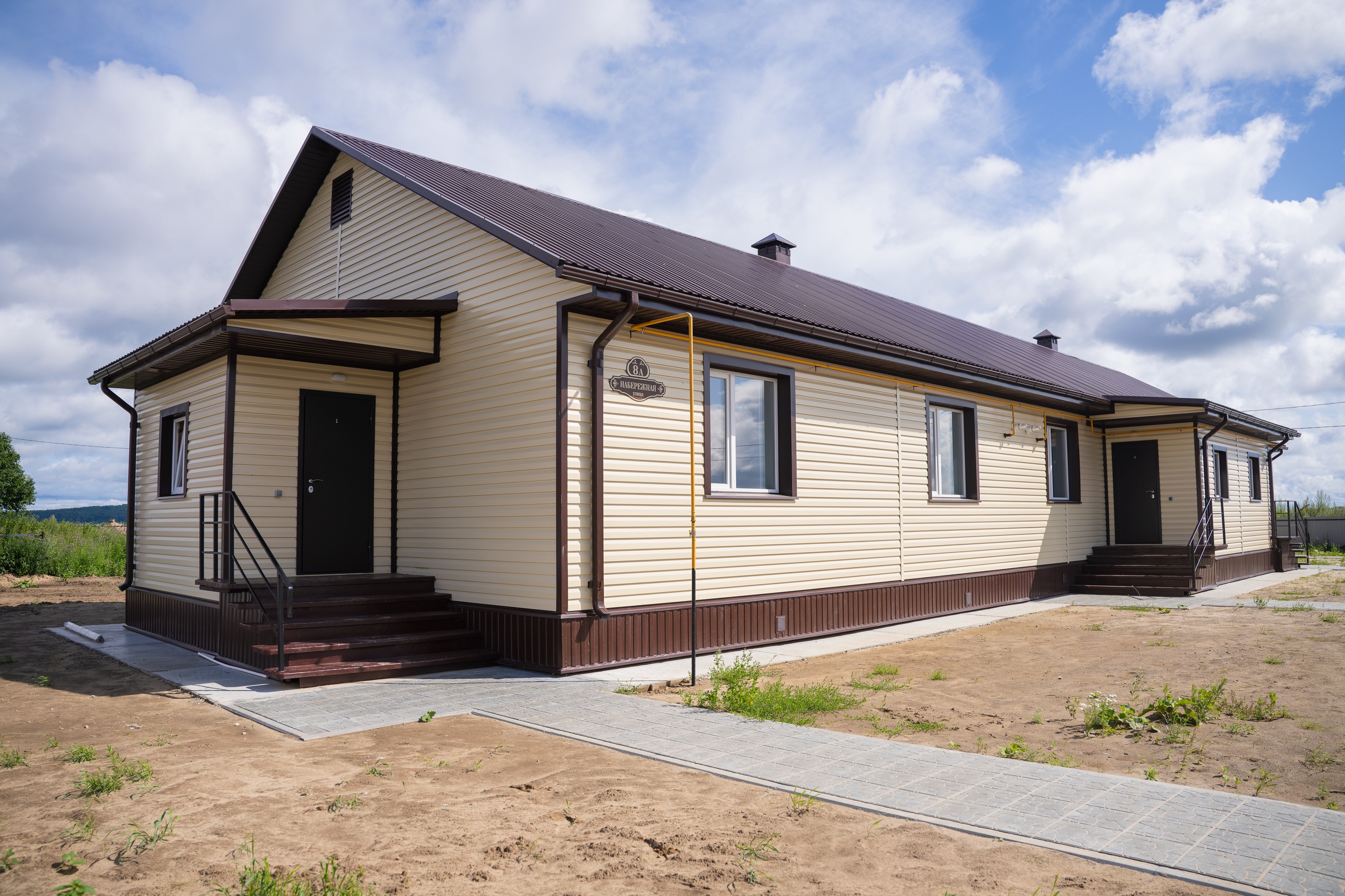 Дом блокированной застройки по улице Набережной состоит из четырех благоустроенных жилых блоков общей площадью 330 кв. м. В квартирах установлены приборы отопления, плиты и сантехника, выполнена отделка.