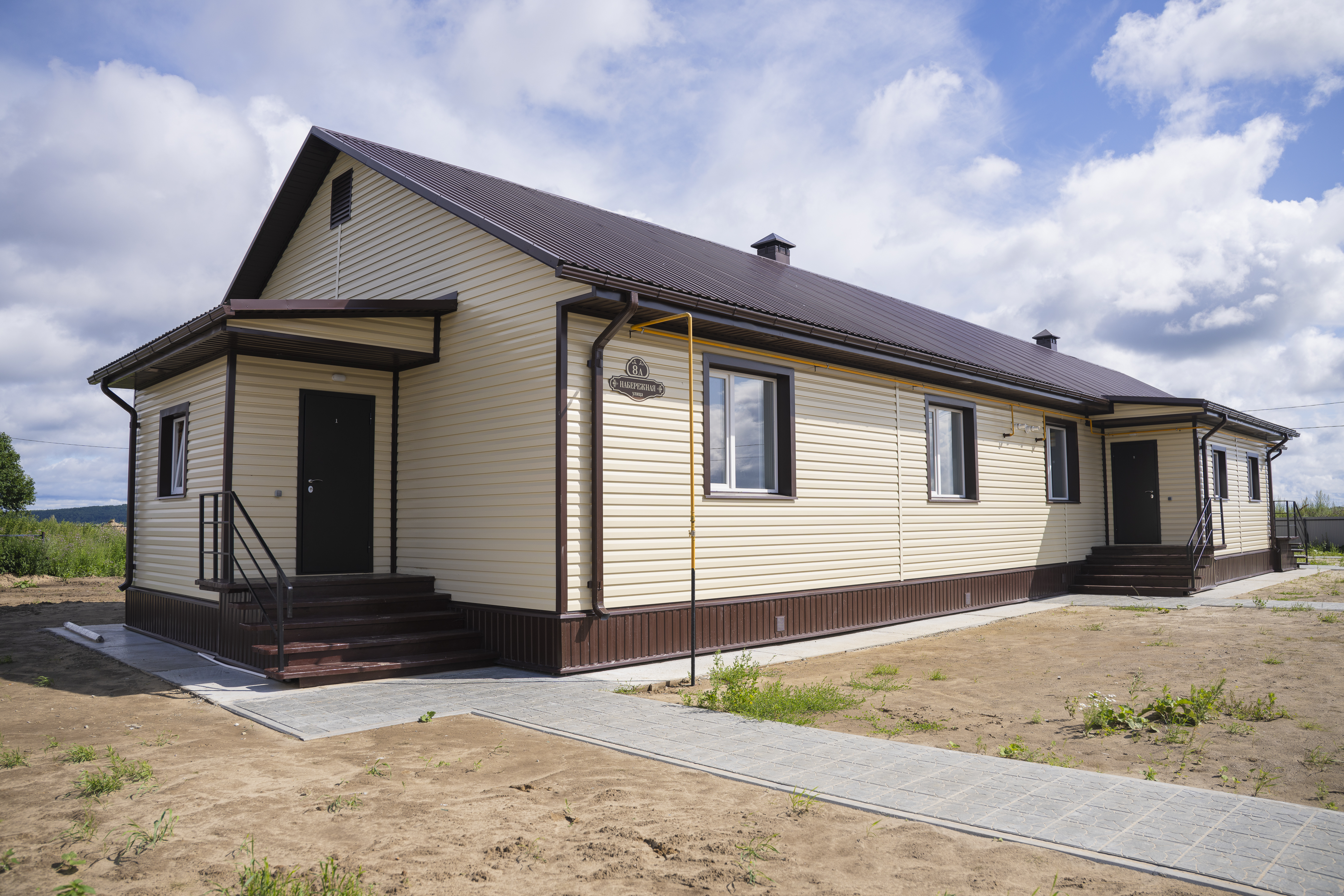 Дом блокированной застройки по улице Набережной состоит из четырех благоустроенных жилых блоков общей площадью 330 кв. м. В квартирах установлены приборы отопления, плиты и сантехника, выполнена отделка.