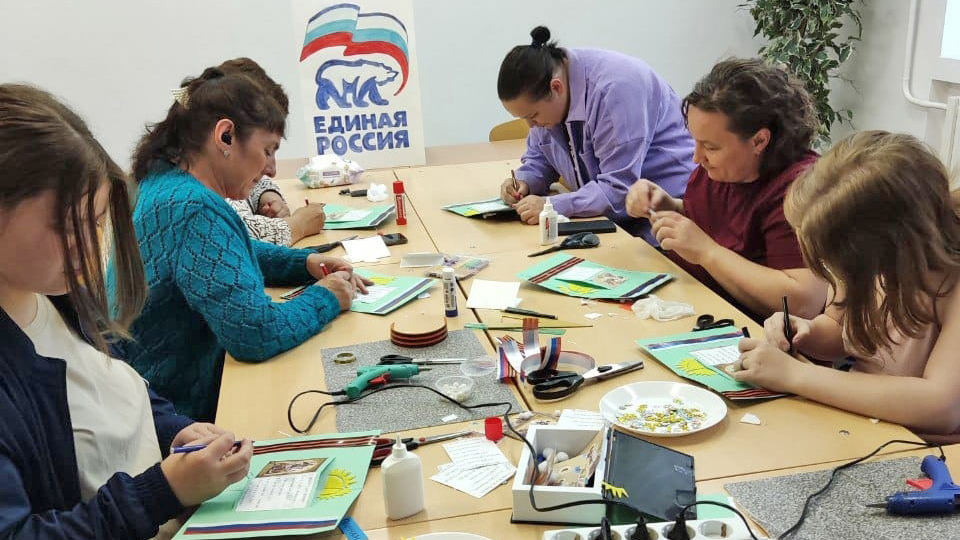 В минувшую пятницу активисты партии «Единая Россия» для жителей села провели мастер-класс по изготовлению патриотических открыток.