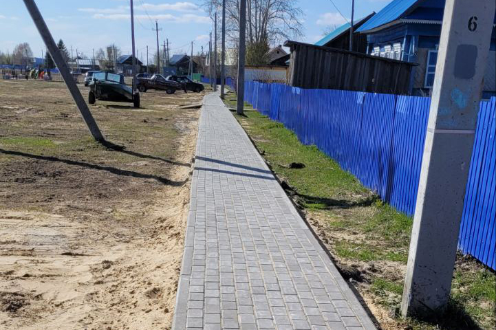 В поселке Кирпичный выполнена первая очередь укладки тротуара по улице Дурицына