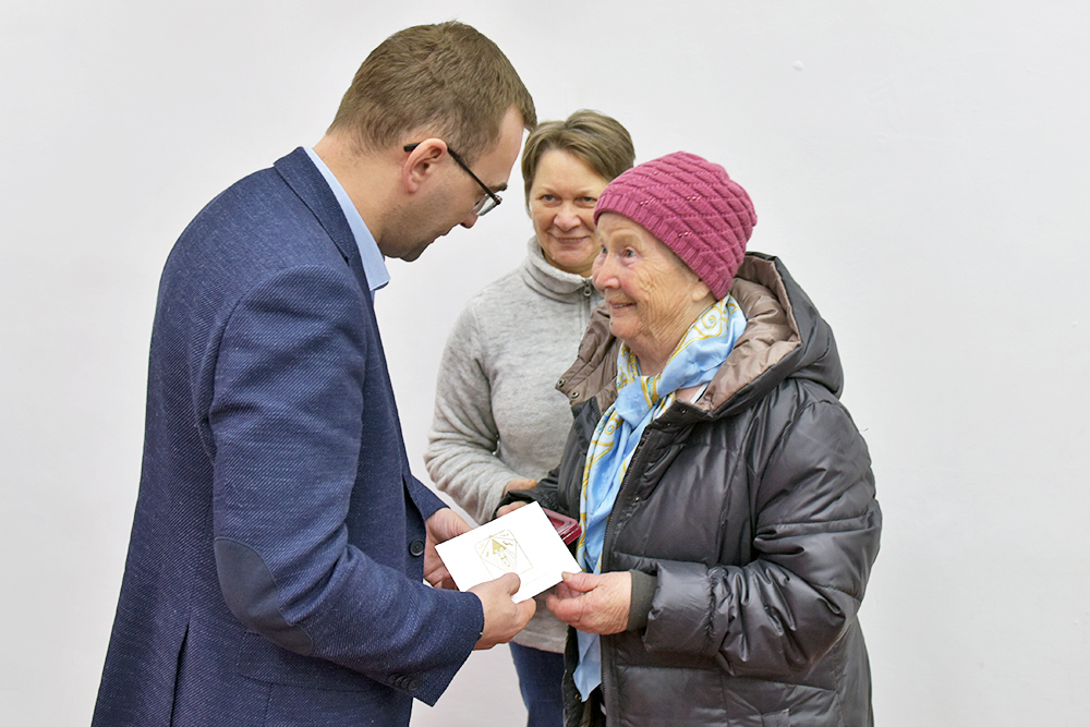 7 февраля глава Ханты-Мансийского района Кирилл Минулин в Красноленинском вручил труженице тыла Лидии Васильевне Лагутовой медаль «75 лет Победы в Великой Отечественной войне 1941 – 1945 гг.»