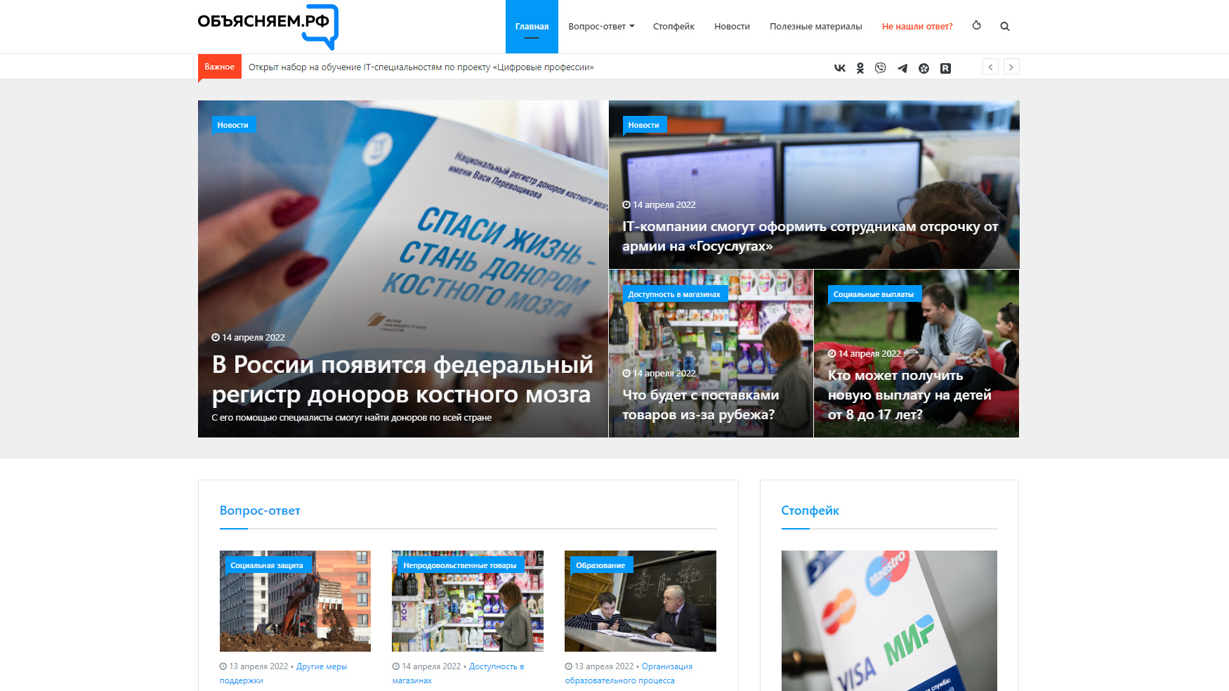Официальный интернет-ресурс для информирования о социально-экономической ситуации в России публикует ответы на актуальные для граждан вопросы.