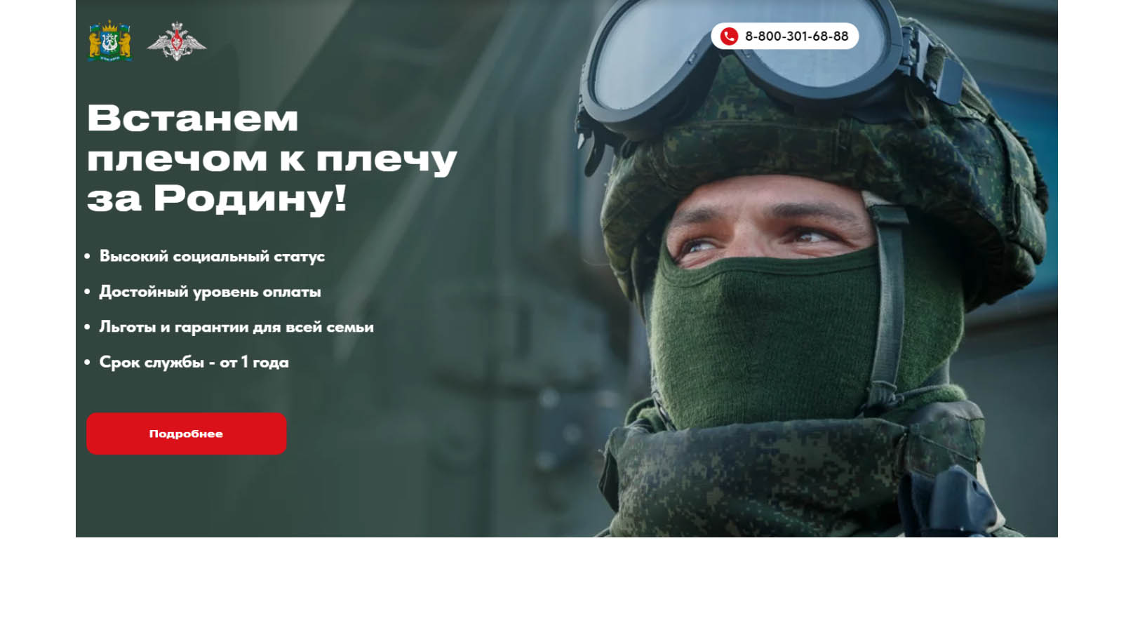 На новом сайте о службе в рядах Вооруженных сил РФ по контракту есть перечень федеральных и региональных льгот и гарантий для контрактников и их семей, комплект документов, список требований к кандидатам и контакты пунктов отбора. Подать заявку или записаться на встречу со специалистом тоже можно на сайте.