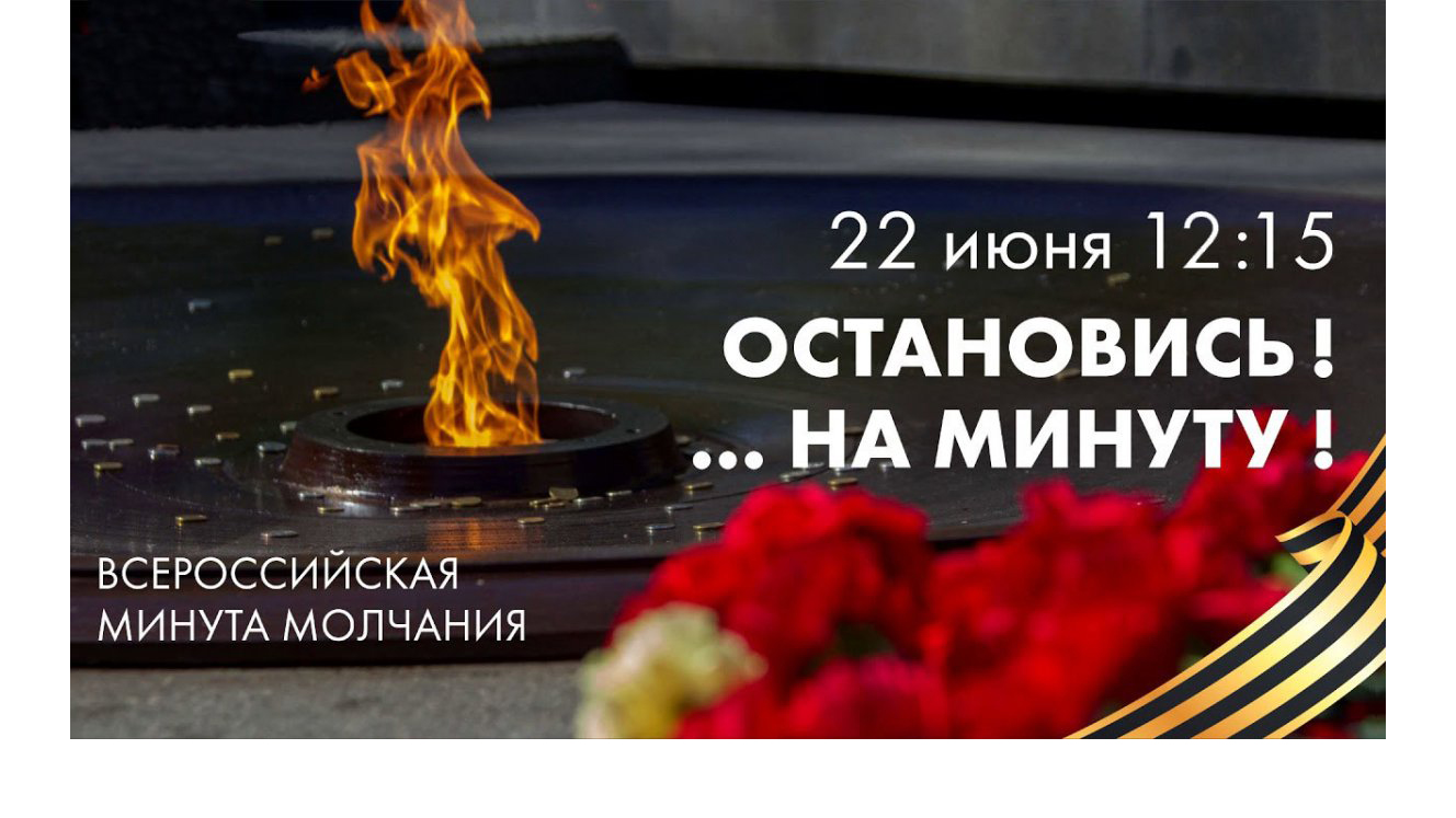 Приглашаем присоединиться к Всероссийской акции «Минута молчания» и почтить героический подвиг наших предков, сражавшихся и победивших на фронтах Великой Отечественной войны, а также тех, кто ковал Великую Победу в тылу.