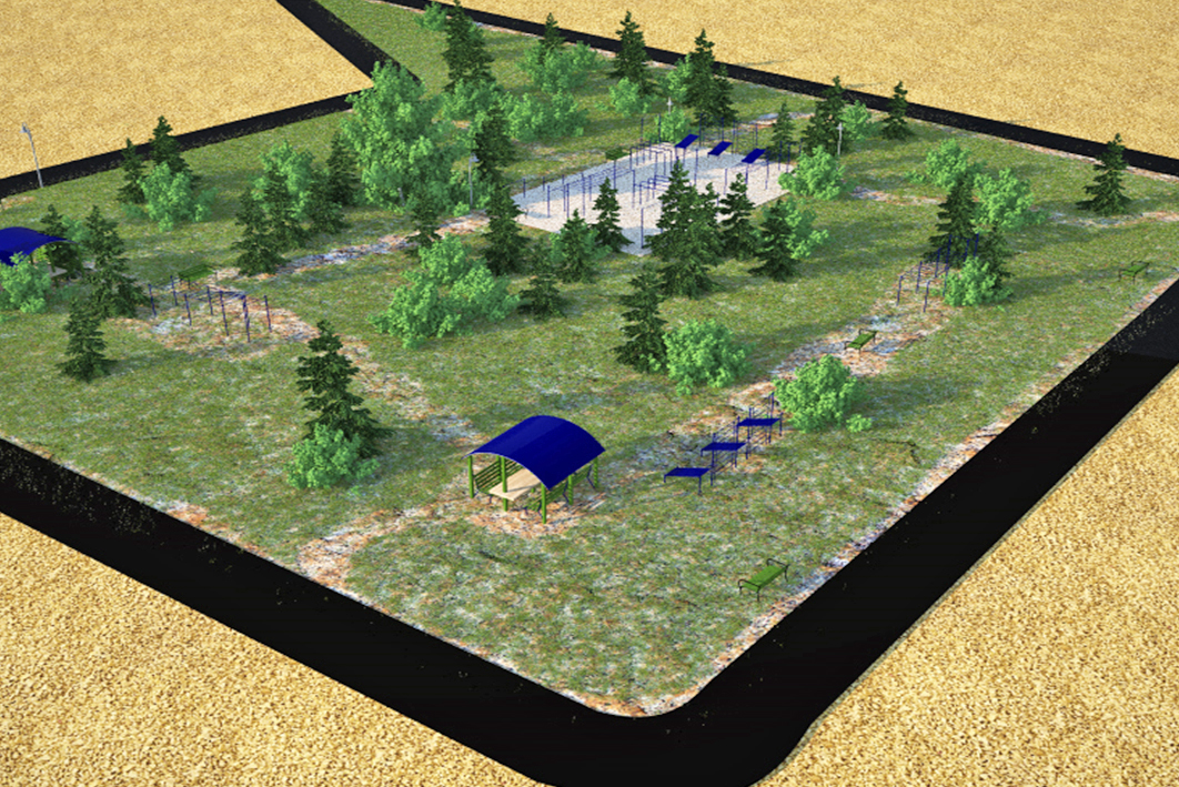 В 2021 году пройдет первый этап по устройству лыжероллерной трассы общей площадью 4 500 кв. м, из которых 200 кв. м займет травмобезопасное покрытие площадки «Workout», 1 500 кв. м отведено на устройство тротуара. Будет установлено 10 спортивных тренажеров.