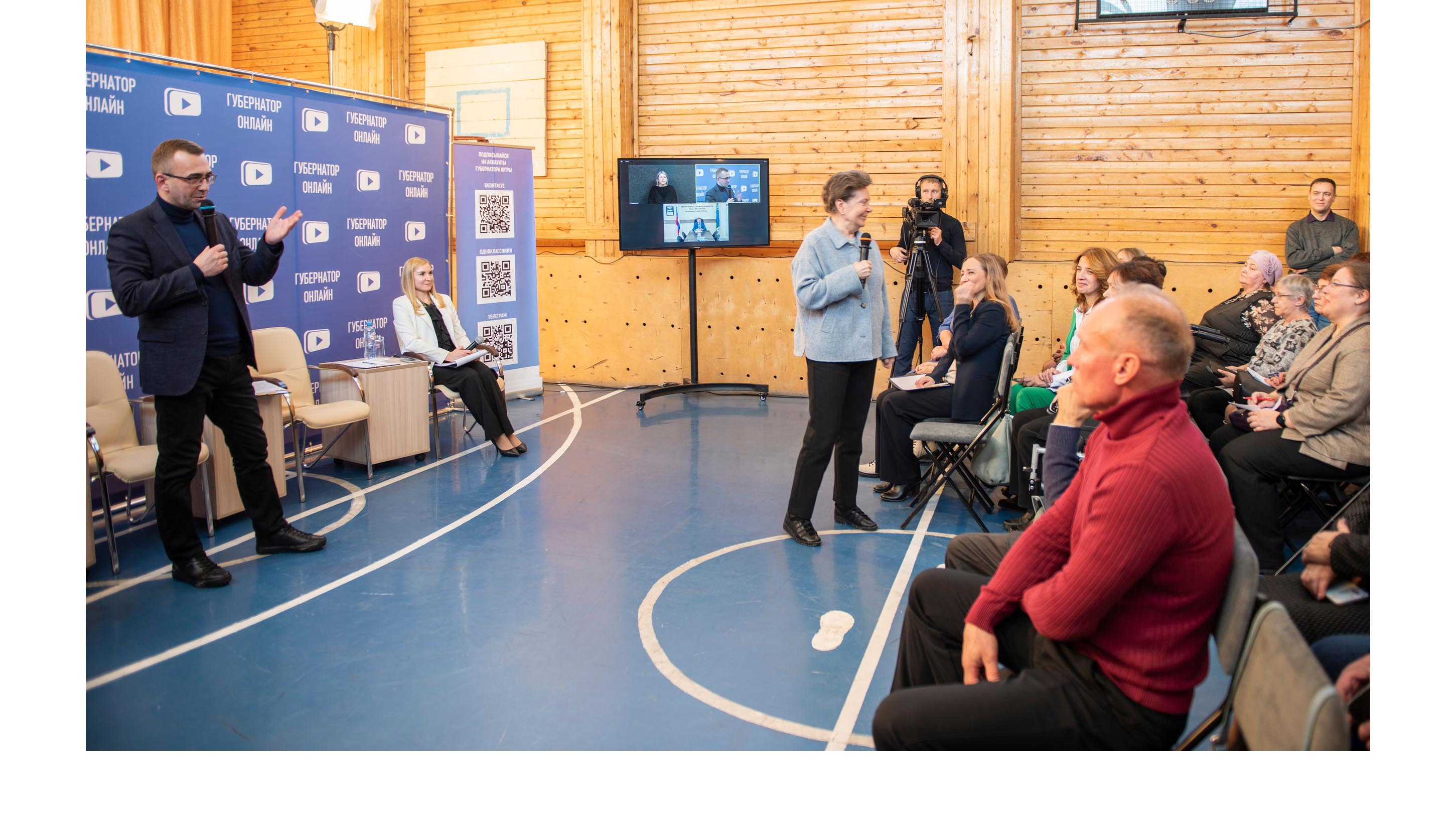 В рамках нового формата общения губернатора Югры с жителями проходят опросы, посвящённые достижениям района и приоритетам развития на 2024 год. Участники встречи, присутствующие в зале и наблюдающие за беседой онлайн, смогли поделиться мнением с помощью специального QR-кода. Предложения, которые получат наибольшую поддержку в ходе открытых встреч и голосования, будут учтены при подготовке отчёта за 2023 год, обращения губернатора и инвестиционного послания на 2024 год. Голосование проходит на портале «Открытый регион — Югра» и будет доступно для жителей в течение недели после проведения встречи с жителями.