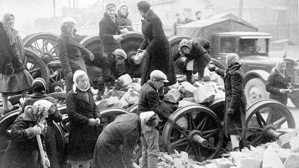 Строительство баррикады у Кировского завода. 1941 год