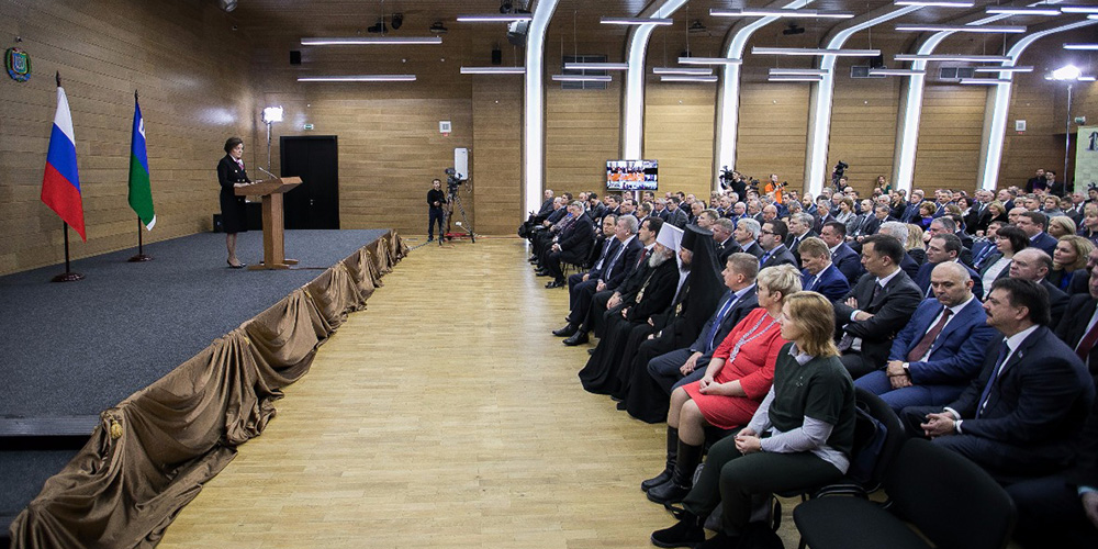 Опираясь на мнение югорчан, результаты общественного обсуждения, предлагаю 2018 год, год 25-летия Конституции Российской Федерации, объявить Годом гражданского согласия! Вспомним герб нашей страны. Три короны, которые венчают головы орла, издревле, начиная с герба Русского царства, символизируют Казанское, Астраханское и Сибирское ханства. Причем центральная корона, которая объединяет головы орла, – наша, сибирская. Югра и Сибирь веками служили точкой единения, идеологической «сборки» нашей страны. Наши земли в силу суровой природы могли быть освоены лишь смелыми, сильными, объединенными общей идеей людьми. Наша идея – благополучие Югры и России. Именно с нее начинается наше гражданское согласие, каждое дело, каждый успех».