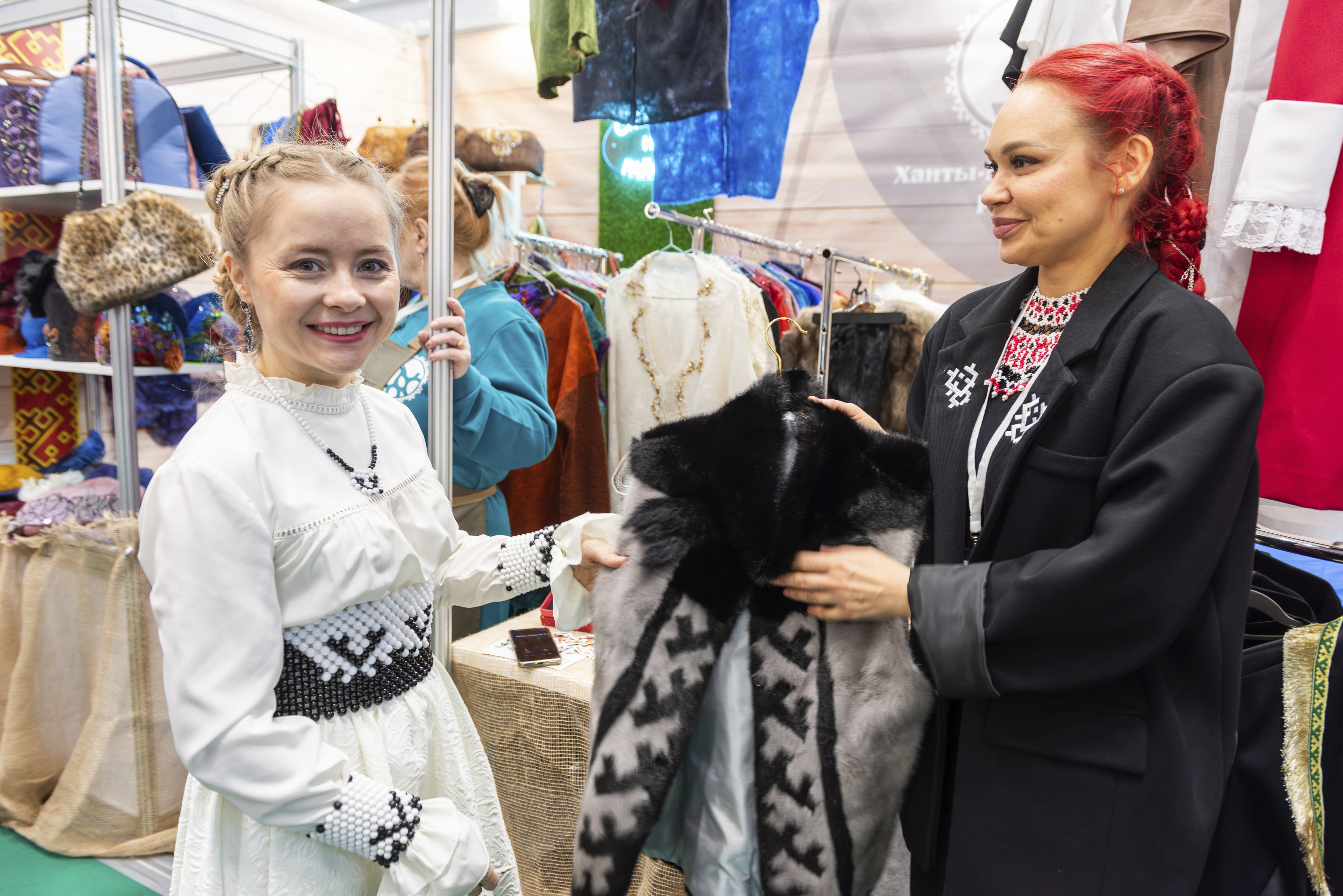 Помимо пищевых производств, особый интерес гостей вызвали креативные индустрии, представленные нашим районом на ярмарке уже во второй раз. Руководитель национальной родовой общины «Обь» Анриетта Вагнер привезла коллекцию одежды, в которую органично вплетены национальные мотивы.