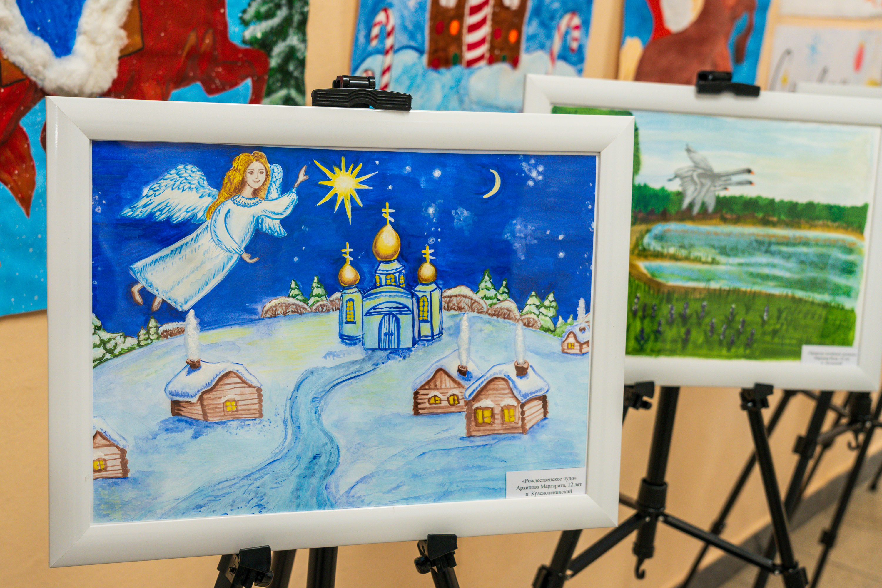 На торжественной церемонии были подведены итоги муниципального конкурса наставнических пар «Педагогический тандем». На выставке желающие могли рассмотреть детские рисунки районного конкурса «Русь Великая».