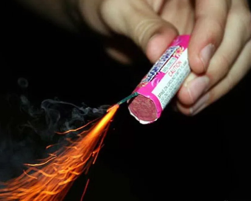 – Не задерживайте горящую петарду в руках!